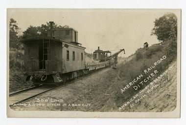 Keywords: “Soo” line making a good ditch in a bad cut. American Railroad Ditcher, American Hoist and Derrick Company. St. Paul , Minn.