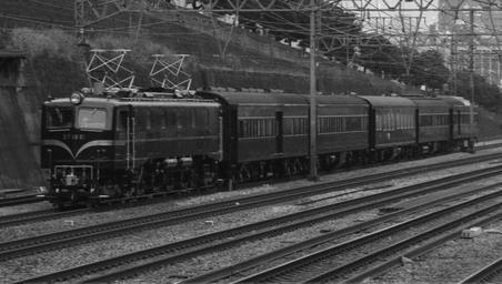 | Keywords: 19850312 EF5861.jpg JNR Class EF58 electric locomotive EF58 61 hauling the Japanese imperial train on a working to Izu on the Tokaido Main Line seen from Keikyu Kanagawa Station The train was not decorated with flags on the front or the imperial seal on the side because this was an empty stock movement ja 伊豆に向かう日 のお召列車 このときは公務でのご利用ではなかったため菊のご紋は御料車に装 されたものの 国旗は取り付けられていない 京 神奈 駅で撮影 1985-03-12 own Hahifuheho cc-zero Uploaded with UploadWizard 1985 in rail transport in Japan JR East EF58 61 Rail cars of the Emperor of Japan Kanagawa Station Kanagawa Black and white photographs of Japan in the 1980s Black and white photographs of trains in Japan January 1985 photographs |