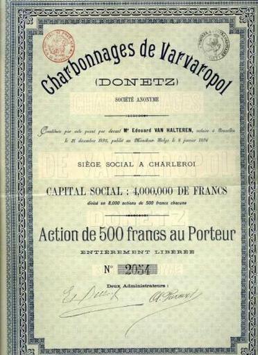 | Keywords: 1986. Charbonnages de Varvaropol.jpg Charbonnages de Varvaropol Акция в 500 ф анков Шахты Ва ва ополья г Пе вомайск Луганской области http //infodon org ua/postal/281 1986 author PD-RusEmpire Stock certificates from Luhansk Oblast Files uploaded by Andrew Butko from various sources 20th century Images from infodon org ua |