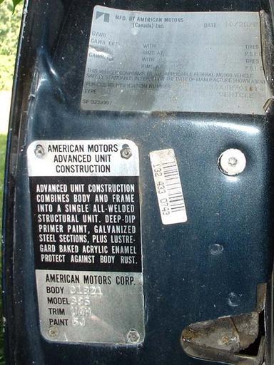 Keywords: 1988 AMC Eagle door plaques.jpg Photo of the plaques on the driver's door of my 1988 AMC Eagle Note the words Mfd by American Motors Canada Inc Transferred from http //en wikipedia org en wikipedia; Transfer was stated to be made by User Moe Epsilon 2007-07-06 Original uploader was Nicholas McIntosh at http //en wikipedia org en wikipedia Released into the public domain by the author en wikipedia Nicholas McIntosh original upload log page en wikipedia 88_Eagle_door_plaques jpg 2007-07-06 14 37 Nicholas McIntosh 525×700×8 106145 bytes <nowiki>Photo of the plaques on the driver's door of my 1988 AMC Eagle Note the words Mfd by American Motors Canada Inc </nowiki> AMC Eagle |