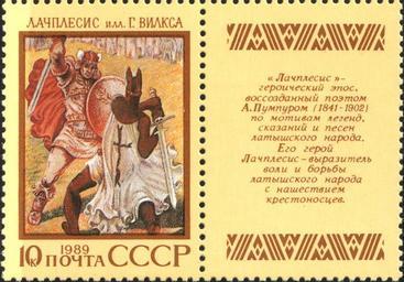 | Keywords: 1989 CPA 6094.jpg en Postage stamp issued by the Soviet Union 1989 depicting view from the Lāčplēsis epic poem ru Лачплесис на почтовой ма ке СССР 1989 год New Scanned 600 dpi by User Matsievsky from personal collection Old Personal collection Scan of postage stamp from own collection First uploader Philaweb 1989-07-12 USSR Post PD-RU-exempt stamps Stamps of the Soviet Union 1989 all stamps Lāčplēsis Stamps of the Soviet Union to be categorised by subject | ||||