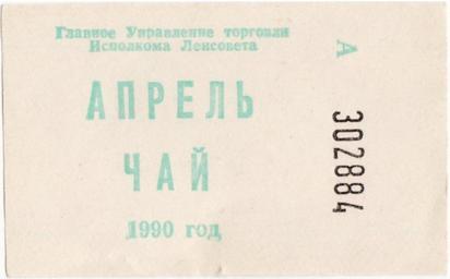 | Keywords: Талон 1990 Ленинград 3.jpg Leningrad's ration stamp for tea of 1990 Russia Талон на чай Ð›ÐµÐ½Ð¸Ð½Ð³Ñ Ð°Ð´ Ð°Ð¿Ñ ÐµÐ»ÑŒ 1990 Own Scanned and processed by NBS PD-RU-exempt Ration stamps History of Saint Petersburg Tea of Russia 1990 texts 1990 in Saint Petersburg |