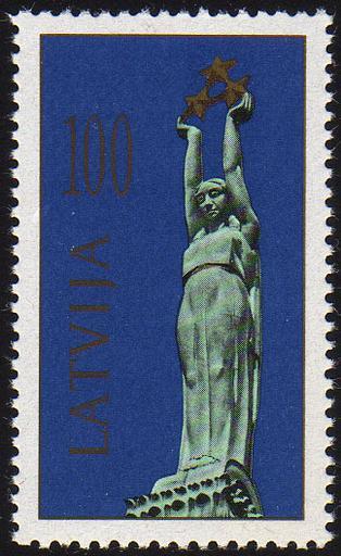 | Keywords: 19911228 100kop Latvia Postage Stamp.jpg en Postage stamp issued by Latvia 1991 depicting fragment view of monument in Riga Latvia Scan of postage stamp from own collection Philaweb 2009-11-15 PD-LV-exempt stamps Stamps of Latvia 1991 Riga on stamps War memorials in Latvia on stamps Milda mythology |