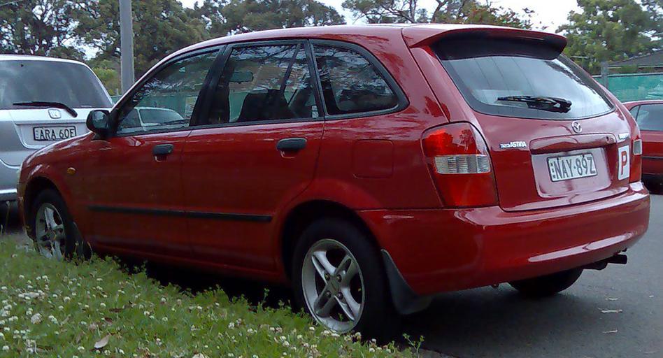 | Keywords: 1998-2001 Mazda 323 (BJ) Astina 5-door hatchback 01.jpg 1998 “2001 Mazda 323 BJ Astina 5-door hatchback photographed in New South Wales Australia Own 2008-10-30 OSX Released into the public domain OSX Mazda 323 BJ Red hatchbacks Photographs by OSX |