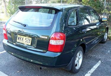 | Keywords: 1999-2000 Mazda 323 (BJ) Shades Astina 5-door hatchback 04.jpg 1999 “2000 Mazda 323 BJ Shades Astina 5-door hatchback photographed in Loftus New South Wales Australia 2009-08-29 Own OSX Released into the public domain OSX Green hatchbacks Mazda 323 BJ Photographs by OSX |