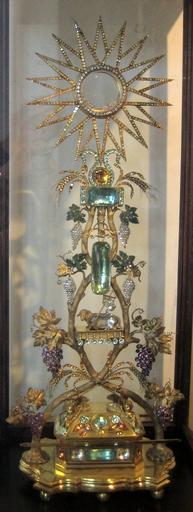 | Keywords: 19th century Monstrance once belonging to Infanta Benedita of Portugal, Centro de Apoio Social de Runa, Portugal.jpg en This monumental monstrance was commissioned and probably designed by the princess D Maria Francisca Benedita of Portugal between the late 18th and early 19th century and offered to the Runa Military Invalids Hospital an institution that she founded It is made of silver gilt diamonds topazes acquamarines emeralds chrysoberyls and other gems standing about 1 30 metres high and weighing almost 15 Kg Nowadays still stands in the museum of the Centro de Apoio Social de Runa former Military Invalids Hospital pt Custódia monumental encomendada e possivelmente desenhada pela princesa D Maria Francisca Benedita entre os finais do século XVIII e os inícios do XIX que a ofereceu à sua grande obra de patronato por ela fundada o Hospital dos Inválidos Militares de Runa É uma peça de enormes proporções com 1 30 metros de altura mais de 15 Kg de peso executada em prata dourada diamantes topázios esmeraldas águas-marinhas crisoberilos entre outras pedras preciosas Ainda hoje se encontra no mesmo edifício actualmente chamado Centro de Apoio Social de Runa numa área de museu criada com vários objectos relevantes entre os quais os oriundos do espólio pessoal da princesa own Wmpearl photo 2009 Centro de Apoio Social de Runa Aquamarine objects Maria Francisca Benedita of Portugal Custódia de Runa Monstrances in Portugal |