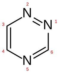 | Keywords: 1,2,5-Triazin (falsche Nomenklatur).svg en Structure of 1 2 5-Triazine with numbers wrong numbering correct is 1 2 4-Triazine de Strukturformel von 1 2 5-Triazin durchnummeriert falsch durchnummeriert korrekt ist 1 2 4-Triazin own 2008-10-16 Orci Image 1 2 4-Triazin svg 1 2 4-triazine Chemical structures to explain nomenclature |