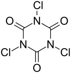 | Keywords: 1,3,5-trichloro-1,3,5-triazinane-2,4,6-trione 200.svg validSVG Structure of 1 3 5-trichloro-1 3 5-triazinane-2 4 6-trione Own 2014-04-19 Emeldir <span class signature-talk >talk</span> Chemical structure verified https //upload wikimedia org/wikipedia/commons/a/a5/1 2C3 2C5-trichloro-1 2C3 2C5-triazinane-2 2C4 2C6-trione_200 svg 1S/C3Cl3N3O3/c4-7-1 10 8 5 3 12 9 6 2 7 11 YRIZYWQGELRKNT-UHFFFAOYSA-N 87-90-1 201-782-8 Synonyms <small>1 3 5-Triazine 2 4 6 1H 3H 5H -trione 1 3 5-trichloro- 1 3 5-Triazine-2 4 6 1H 3H 5H -trione 1 3 5-trichloro- 9CI 1 3 5-Trichloro-s-triazine-2 4 6 1H 3H 5H -trione 1 3 5-Trichloro-s-triazinetrione 1 3 5-trichloro-1 3 5-triazine-2 4 6 1H 3H 5H -trione 1 3 5-Trichloro-1 3 5-triazine-2 4 6 1H 3H 5H -trione 1 3 5-Trichloro-1 3 5-triazine-2 4 6-trione 1 3 5-Trichloro-2 4 6-trioxohexahydro-s-triazine 1 3 5-Trichloro-2 4 6-triazinetrione 1 3 5-Trichloro-1 3 5triazinane-2 4 6-trione 1 3 5-Trichloro-s-triazine-2 4 6 1H 3H 5H -trione 1 3 5-Trichloro-S-triazine-2 4 6-trione 1 3 5-Trichlorohexahydro-1 3 5-triazine-2 4 6-trione 1 3 5-Trichloroisocyanuric acid 4-26-00-00642 Beilstein Handbook Reference ACL 85 ACL-85 AI3-17193 Bleaching solution BRN 0202022 Caswell No 876B CBD 90 CCRIS 2311 CDB 90 Chloreal EPA Pesticide Chemical Code 081405 Fi Clor 91 Fichlor 91 HSDB 885 Isocyanuric chloride Kyselina trichloisokyanurova Kyselina trichloisokyanurova CZECH N N' N-Trichloroisocyanuric acid Neochlor 90 NSC-405124 s-Triazine-2 4 6 1H 3H 5H -trione 1 3 5-trichloro- 8CI Sincloseno Symclosen Symclosene Symclosene USAN Symclosenum TCCA Trichlorinated isocyanuric acid TRICHLORO-S-TRIAZIMETHIONE Trichloro-s-triazine-2 4 6 1H 3H 5H -trione Trichloro-s-triazinetrione Trichloro-s-triazinetrione dry DOT Trichlorocyanuric acid Trichloroiminocyanuric acid Trichloroisocyanic acid Trichloroisocyanurate Trichloroisocyanuric acid Trichloroisocyanuric Acid Trichloroisocyanuric acid dry Trichloroisocyanuric Acid1 UN2468 WLN T6NVNVNVJ AG CG EG</small> PD-chem Trichlorocyanuric acid |