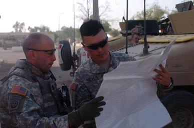 | Keywords: 1-61 CAV soldiers react after rollover DVIDS25745.jpg en FOB RUSTAMIYAH Iraq - 1st Sgt James Westover left first sergeant of Troop B and Sgt 1st Class Jonathan Meyer mortar section sergeant both of 1st Squadron 61st Cavalry Regiment 4th Brigade Combat Team 101st Airborne Division look over a map before a mission June 23 Meyer was new to the unit and familiarizing himself with the area of operations May 19 when his vehicle was struck by an improvised-explosive device causing it to rollover U S Army Photo by Pfc Paul David Ondik 4th BCT PAO 101st Abn Div 2006-07-14 Sgt Paul Ondik https //www dvidshub net/image/25745 25745 2006-07-14 11 16 FORWARD OPERATING BASE RUSTAMIYAH IQ PD-USGov 101st Airborne Division Images from DoD uploaded by Fæ |