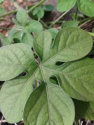 | Keywords: பூனைக்காலிக் கீரை1.jpg en Botanical name - Ipomoea pes-tigridis Common names - Tiger s foot; Bind Weed; Morning Glory Tamil names PULIKKALI tiger legged ; PULICHUVATI having tiger impression ; PUNAIKKALIK KIRAI cat-legged pot-herb Malayalam name - Pulichuvatu Hindi name - Pancha pathia Flowering fruiting period - July February Nativity Trop East Africa As per studies Leaves are used as resolvent for Boils Carbuncles etc ;Leaves are also used for poulticing Sores;Creeper is extracted and taken for treatment of Rabies;Leaf powder is smoked to get relief from Bronchial spasm; As a herb it is used for Headaches Swellings Poisonous stingsand Snake bites;Leaf paste is useful for Pimples ;Seed paste with coconut oil is applied to heal Wounds In photo- Leaf of the Creeper ; Look at shape of leaf which is like the impression of tiger or cat ta பூனைக்காலிக் க ரை புலிக்காலி பூனைக்க ரை எனவும் இது அறியப்படுகிறது விதையை அரைத்துத் தேங்காயெண்ணெய்யுடன் சேர்த்துப் புண்ணுக்குத் தடவுவர்;கொடியை அரைத்து வெறிநாய்கடி மருந்தாகவும் பயன்படுத்துவர் ;இலை பாம்புக் கடி மருந்தாகும் ; சுவாசக் கோளாறுக்கு இலையைப் புகைப்பர் ;தலைவலி மருந்தாகவும் வ க்கங்களுக்கு மருந்தாகவும் இக் கொடி நல்ல மருந்தாகிறது படம்- பூனைக்காலிக் க ரையின் இலை; புலிப்பாதம் அல்லது பூனைப்பாதம் போலுள்ளதைப் பார்க்க Own research Dr S Soundarapandian 20013-10-26 Own field work Shot in Chennai Tamilnadu India 4 5 kms off sea-shore ; Latitude-13°02'20 N ; Longitude- 80°13'43 E ; Elevation from sea level - 6 7 m Ipomoea pes-tigridis Cc-zero |