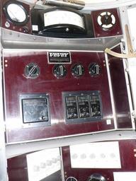 | Keywords: 1 Bathyscaph Trieste German Museum Munich.JPG Bathyscaph Trieste German Museum Munich 1 Schalttafel für die Außenbeleuchtung 3 Scheinwerfer Quecksilberdampflampen an der Unterseite des Schwimmkörpers und 2 Glühlampen in Stahlgehäusen am Beobachtungsfenster der Tauchkugel und im Vorzimmer Ateliers de Constructions Mécaniques de Vevey S A Vevey Schweiz 2 Schalttafel zur Betätigung der Ballastschleusen und anderen Einrichtungen Ateliers de Constructions Mécaniques de Vevey S A Vevey Schweiz 3 Schalttafel für die Antriebsmotoren Ateliers de Constructions Mécaniques de Vevey S A Vevey Schweiz 4 Reservematerial 5 Chronometer des Fabrikats wie es auch bei den Ballonflügen in die Stratosphäre 1931 und 1932 von Auguste Piccard benutzt wurde Ateliers de Constructions Mécaniques de Vevey S A Vevey Schweiz 6 Totalisator zur Kontrolle der Ballastabgabe Mit zwei Sekunden-Zählwerken die nur laufen wenn der Strom der zugehörigen Ballastschleuse unterbrochen ist und Ballast abgegeben wird Da der Ballastausfluß jeder Schleuse ziemlich genau 10 kg je Sekunde beträgt kann man sofort erkennen wie viel Ballast verbraucht worden ist Langines Compagnie des Mantres Longines Francillon S A St Imier Schweiz 7 Manometer die zur Ermittlung der Tauchtiefe den Wasserdruck messen Haenni Jegenstorf Schweiz 8 Hochdruckventil 1200 kp/qcm Maschinenfabrik Burckhardt Aktiengesellschaft Basel Schweiz 9 Wasserdichter und explosionsgeschützter Fernsprechapparat für Batteriebetrieb mit einer Buchse im Schwimmkörper so dass nach dem Auftauchen eine Kabelverbindung mit Begleitfahrzeugen hergestellt und so beim Tauchen bis in geringe Tiefen aufrechterhalten werden kann Società Italiana Telecomunicazioni Siemens s p a Milano Italien 10 Automatische Filmkamera Bolex H 16 Reflex Paillard S A Ste Croix Schweiz 11 Photographische Kamera Exakta Ihagee Kamerawerk A G Dresden 12 Anzeigeinstrument des Nickelwiederstandsthermometers zur Messung der Temperatur des Tragebenzins Bosco Co S p a Torino Italien 13 Pendel zur Bestimmung der Trimmlage 14 Zink-Silber-Akkumulatoren zum Betrieb elektrischer Geräte der Ballastschleusen der Haltemagnete der Antriebsmotoren der Ventilatoren der Scheinwerfer Lampen und Innenbeleuchtung 330 Zellen zu je 1 5 Volt Electrona S A Boudry Schweiz 15 Pressluftflaschen zum Ausblasen des Wassers aus Vorzimmer und Einsteigeschacht AGA A G Pratteln-Zürich-Genf 16 Sauerstoff-Flaschen der Belüftungsanlage um den Sauerstoffgehalt der Atemluft in der Tauchkugel zu erneuern AGA A G Pratteln-Zürich-Genf 17 Natronpatronen Aus den Druckflaschen in einem Injektor strömender Sauerstoff saugt Raumluft durch diese drei Patronen Kohlendioxyd wird absorbiert und die gereinigte Luft gelangt gemischt mit Sauerstoff im Kreislauf in die Kabine zurück Drägerwerk Lübeck 18 Schalttafel Ateliers de Constructions Mécaniques de Vevey S A Vevey Schweiz 19 Unterwassertelefon nach Russel Lewis Laboratorium für Unterwasserschall New London Connecticut USA mit dem auch während des Tauchens eine Sprech- oder Signalverbindung mit dem Begleitschiff aufrechterhalten werden kann Die beim Sprechen auf das Mikrofon auftreffenden Schallwellen werden im Bereich von 300 bis 3000 Hertz in elektrische Schwingungen und nach Verstärkung zur à bertragung im Wasser in Unterschallschwingungen von 8387 bis 11087 Hertz umgewandelt Einseitenband-Modulation mit unterdrücktem Träger Beim Empfang findet der umgekehrte Vorgang statt 20 Echolot 21 Log zum messen der Vertikalgeschwindigkeit 22 Innenbeleuchtung mit 6 kleinen Glühlampen zur Beobachtung der Instrumente Sie beleuchten die weiß gestrichene Decke der Tauchkugel und sind gegen die Besatzung abgeschirmt um Blendwirkung zu vermeiden 23 Traggerüste für die Geräteausstattung Verformungen der Kugel durch Temperaturänderungen werden von Schraubfedern aufgenommen die in Bohrungen am oberen Ende der Stangen sitzen und einen Messingkolben gegen die Kugelwand drücken Ateliers de Constructions Mécaniques de Vevey S A Vevey Schweiz 24 Sitze 25 Fußboden der den Keller abdeckt Im Keller werden Alkalipatronen zur Erneuerung der Atemluft Druckgasflaschen zum Ausblasen des Einsteigschachtes nach einer Tauchfahrt und anderes Reservematerial aufbewahrt 26 Tauchkugel Fried Krupp Essen 27 Einsteigeluke 28 Hauptbeobachtungsfenster 29 Tonbandgerät Kudelski Enregistreur autonomes Nagra Paudex-Lausanne own Reinraum 119 September 2010 Trieste submarine 1953 |