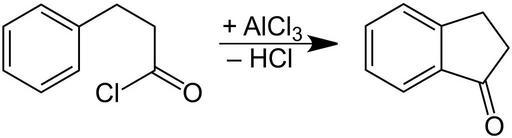 Keywords: 1-Indanone Synthesis V.1.svg en 1-Indanone_Synthesis de 1-Indanon_Synthese own Jü 2012-07-12 Cc-zero Friedel-Crafts acylation