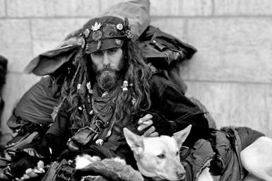 Keywords: 1 Less.jpg en FameWeener own FameWeener Black and white photographs of sitting men Men with dogs Men looking at viewer Smoking men