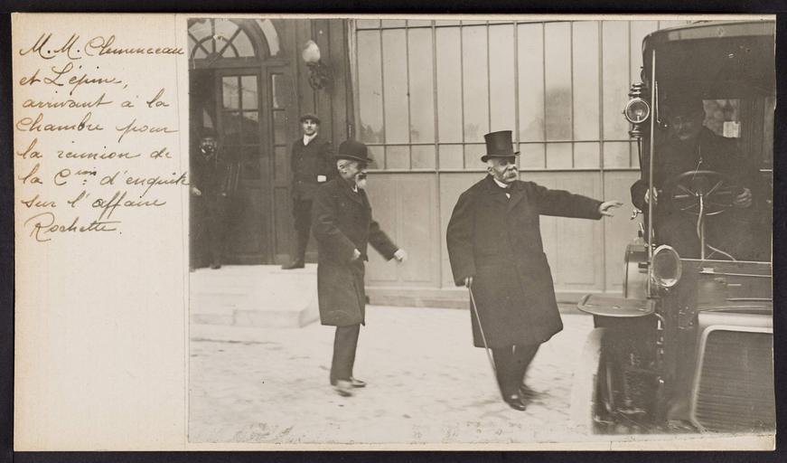 Keywords: photo border Messieurs Clemenceau et Lépine arrivant à la chambre pour la réunion de la commission d'enquête sur l'affaire Rochette. Messieurs Clemenceau et Lépine arrivant à la chambre pour la réunion de la commission d'enquête sur l'affaire Rochette. |