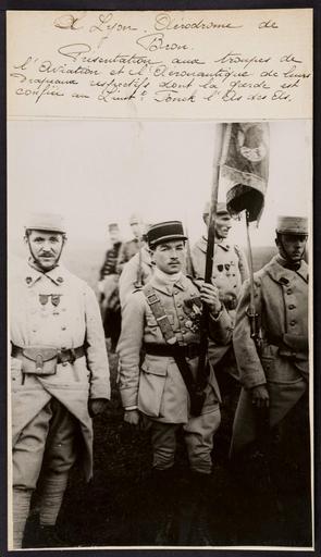 | Keywords: people groupshot photo border A Lyon. Aérodrome de Bron. Présentation aux troupes de l'aviation et de l'aéronautique de leurs drapeaux respectifs dont la garde est confiée au lieutenant Fonck, l'as des as. A Lyon. Aérodrome de Bron. Présentation aux troupes de l'aviation et de l'aéronautique de leurs drapeaux respectifs dont la garde est confiée au lieutenant Fonck, l'as des as. |