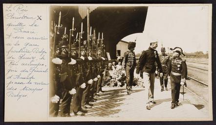 | Keywords: photo border text Le roi Christian X quitte la France. A son arrivée à la gare frontière belge de Quévy, le roi accompagné du général d'Amade passe la revue des troupes belges. Le roi Christian X quitte la France. A son arrivée à la gare frontière belge de Quévy, le roi accompagné du général d'Amade passe la revue des troupes belges. |