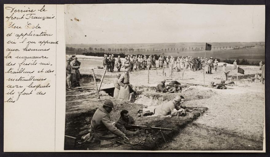 | Keywords: bleu machine gun machinegun light machine gun lightmachinegun machine guns machineguns french army frencharmy the great war thegreatwar great war greatwar world war one worldwarone world war i worldwari wwi first world war firstworldwar armée de terre arméedeterre armee de terre armeedeterre chauchat machine gun chauchatmachinegun chauchat light machine gun chauchatlightmachinegun chauchat hotchkiss machine gun hotchkissmachinegun hotchkiss photo border outdoor Derrière le front français. Une école d'application où l'on apprend aux hommes la manœuvre des fusils mitrailleurs. Derrière le front français. Une école d'application où l'on apprend aux hommes la manœuvre des fusils mitrailleurs. |