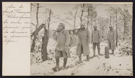Keywords: bleu french army frencharmy the great war thegreatwar great war greatwar world war one worldwarone world war i worldwari wwi first world war firstworldwar armée de terre arméedeterre armee de terre armeedeterre wine wine barrel winebarrel barrel snow photo border drawing sketch Front français. Poilus à la corvée de vin. Front français. Poilus à la corvée de vin.