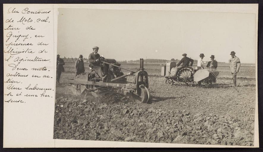 | Keywords: photo border outdoor Concours de moto-culture de Grigny, en présence du ministre de l'agriculture. Deux motoculteurs en action. Une laboureuse et une herseuse. Concours de moto-culture de Grigny, en présence du ministre de l'agriculture. Deux motoculteurs en action. Une laboureuse et une herseuse. |