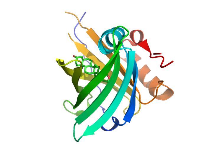| Keywords: 1LNM (Anticalin DIGA16 in complex with digitoxigenin).png de Bändermodell des Anticalins DIGA16 in Komplex mit Digitoxigenin basierend auf Kristallstrukturdaten PDB 1LNM Struktur gerendert mit PyMol 0 99 Siehe auch Korndoerfer IP Schlehuber S Skerra A 2003 Structural mechanism of specific ligand recognition by a lipocalin tailored for the complexation of digoxigenin J Mol Biol 330 385-396 own S Jähnichen 2009-07-07 Ribbon diagrams | ||||