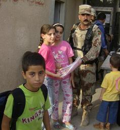 | Keywords: 1st Bn., 6th IAD and 1st Bn., 23rd Inf. Regt. Soldiers provide medical trea DVIDS28997.jpg en BAGHDAD Soldiers of the 1st Brigade 6th Iraqi Army Division hand out gifts to children of Ghazaliya during Operation Ghazaliya Aid which was organized as a response to citizen's requests to 1st Battalion 23rd Infantry Regiment 3rd Brigade 2nd Infantry Division attached to the 2nd Brigade Combat Team 1st Armored Division of Multi-National Division Baghdad U S Army photo by Capt Robert Callaghan Headquarters and Headquarters Company 1st Battalion 23rd Infantry Regiment 3rd Brigade 2nd Infantry Division attached to 2nd Brigade Combat Team 1st Armored Division Multi-National Division Baghdad 2006-08-30 https //www dvidshub net/image/28997 28997 2006-08-30 11 39 BAGHDAD IQ PD-USGov 1st Armored Division United States 23rd Infantry Regiment United States Images from DoD uploaded by FĂŚ |