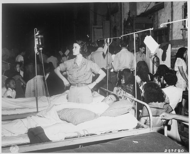 | Keywords: 1st Lieutenant Phyllis Hocking adjusts glucose injection apparatus for a GI patient in the 36th Evac. Hospital, Palo... - NARA - 542115.tif Scope and content General notes Use War and Conflict Number 922 when ordering a reproduction or requesting information about this image 542115 Local identifier 319-CE-124 237580 Department of Defense Department of the Army Office of the Chief of Communications-Electronics U S Army Audiovisual Agency 02/28/1964 - 1967 Still Picture Records Section Special Media Archives Services Division NWCS-S National Archives at College Park 8601 Adelphi Road College Park MD 20740-6001 1944-12-24 Record group Record Group 319 Records of the Army Staff 1903 - 2009 Record group ARC 633 Aerial and Panoramic Photographs of Various Countries and the United States compiled 1942 - 1964 Series ARC 542114 File unit File unit ARC Variant control numbers NAIL Control Number NWDNS-319-CE-124 237580 yes Other versions NARA-cooperation PD-USGov Women in the United States Army World War II military hospitals Women in World War II Battle of Leyte 24 December Women in medicine |