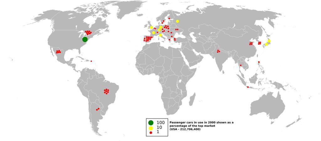 Keywords: 2000cardistribution.svg en This shows the global distribution of passenger cars in use in 2000 as a percentage of the top market USA - 212 706 400 Data was extracted on 16th June 2007 Source - http //unstats un org/unsd/cdb/cdb_source_xrxx asp source_code 6 Based on File 2000car PNG by User Anwar_saadat Own work by uploader information sourced from File 2000car PNG by User Anwar_saadat Nevetsjc 2009-06-15 My own work File 2000car PNG Automotive industry |