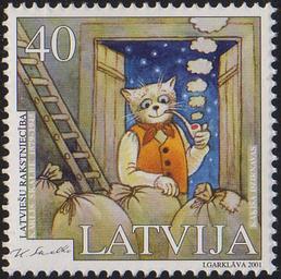 | Keywords: 20010609 40sant Latvia Postage Stamp.jpg en Latvian postage stamp depicting scene from the play Kaķīša dzirnavas by writer Kārlis Skalbe 1879-1945 Scan of postage stamp from own collection Philaweb 2010-05-01 PD-LV-exempt stamps Stamps of Latvia 2001 |