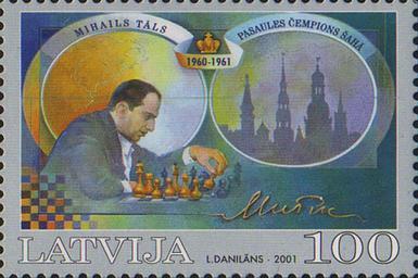 | Keywords: 20010818 1lats Latvia Postage Stamp X.jpg en Latvian postage stamp commemorating the 40th anniversary of the 1960-1961 world chess champion Mihails Tāls Scan of postage stamp from own collection Philaweb 2010-05-01 PD-LV-exempt stamps <gallery> File 20010818 1lats Latvia Postage Stamp jpg </gallery> Stamps of Latvia 2001 Chess on stamps of Latvia People of Latvia on stamps Riga on stamps Mikhail Tal on stamps | ||||