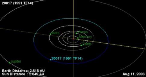 | Keywords: 20017 Orbit.jpg en This orbit diagram was generated using the JPL Small-Body Database Browser found here http //ssd jpl nasa gov/sbdb cgi 2006-08-11 own User Charlesdesaintaignan Charlesdesaintaignan en Original upload log en wikipedia ftcg page en wikipedia 20017_Orbit jpg wikitable - 18 19 11 August 2006 434 × 229 36 066 bytes Charlesdesaintaignan w en <nowiki> This orbit diagram was generated using the JPL Small-Body Database Browser found here http //ssd jpl nasa gov/sbdb cgi </nowiki> Orbits of asteroids |