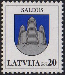 | Keywords: 20040214 20sant Latvia Postage Stamp.jpg en Latvian postage stamp definitive depicting the Saldus town coat of arms Scan of postage stamp from own collection Philaweb 2010-04-24 PD-LV-exempt stamps Stamps of Latvia 2004 Definitive stamps of Latvia 20 Coats of arms of cities of Latvia on stamps Saldus Saldus on stamps |