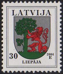 | Keywords: 20040907 30sant Latvia Postage Stamp.jpg en Latvian postage stamp definitive depicting the Liepāja town coat of arms Scan of postage stamp from own collection Philaweb 2010-04-24 PD-LV-exempt stamps Stamps of Latvia 2004 Definitive stamps of Latvia 30 Coats of arms of cities of Latvia on stamps Liepaja Liepāja on stamps |