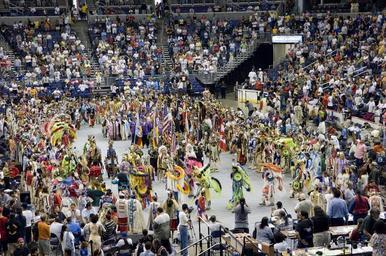 | Keywords: smithsonian institution smithsonianinstitution american indian americanindian expo crowd native american nativeamerican flags head dress headdress feathers tribal costume tribalcostume tribal clothes tribalclothes ceremony american flag americanflag color guard colorguard audience crowds in bleachers crowdsinbleachers 2005 pow bleachers diversity powwow arena national museum of the american indian nationalmuseumoftheamericanindian people outdoor Description: Powwows are large social gatherings of Native Americans who follow traditional dances started centuries ago by their ancestors, and which continually evolve to include contemporary aspects. These events of drum music, dancing, singing, artistry and food, are attended by Natives and non-Natives, all of whom join in the dancing and take advantage of the opportunity to see old friends and teach the traditional ways to a younger generation. During the National Powwow, the audience see dancers in full regalia compete in several dance categories, including Men and Women's Golden Age (ages 50 and older); Men's Fancy Dance, Grass and Traditional (Northern and Southern); Women's Jingle Dress, Fancy Shawl, and Traditional (Northern and Southern); Teens (13-17); Juniors (6-12) and Tiny Tots (ages 5 and younger). The drum groups are the heart of all powwows and provide the pulsating and thunderous beats that accompany a dancer's every movement. The powwow is led by three "host drums" that showcase three distinct styles of singing (Northern, Southern and contemporary) and represent the best examples of each style. The drum contest highlights groups of 10 to 12 members each, and they sing traditional family songs that are passed down orally from one generation to the next. The National Museum of the American Indian sponsored the National Powwow in 2002, 2005, and 2007 as a way of presenting to the public the diversity and social traditions of contemporary Native cultures. Creator/Photographer: Cynthia Frankenburg Medium: Digital photograph Culture: American Indian Geography: USA Date: 2005 Repository: National Museum of the American Indian Accession number: 081405CFPWb083 Description: Powwows are large social gatherings of Native Americans who follow traditional dances started centuries ago by their ancestors, and which continually evolve to include contemporary aspects. These events of drum music, dancing, singing, artistry and food, are attended by Natives and non-Natives, all of whom join in the dancing and take advantage of the opportunity to see old friends and teach the traditional ways to a younger generation. During the National Powwow, the audience see dancers in full regalia compete in several dance categories, including Men and Women's Golden Age (ages 50 and older); Men's Fancy Dance, Grass and Traditional (Northern and Southern); Women's Jingle Dress, Fancy Shawl, and Traditional (Northern and Southern); Teens (13-17); Juniors (6-12) and Tiny Tots (ages 5 and younger). The drum groups are the heart of all powwows and provide the pulsating and thunderous beats that accompany a dancer's every movement. The powwow is led by three "host drums" that showcase three distinct styles of singing (Northern, Southern and contemporary) and represent the best examples of each style. The drum contest highlights groups of 10 to 12 members each, and they sing traditional family songs that are passed down orally from one generation to the next. The National Museum of the American Indian sponsored the National Powwow in 2002, 2005, and 2007 as a way of presenting to the public the diversity and social traditions of contemporary Native cultures. Creator/Photographer: Cynthia Frankenburg Medium: Digital photograph Culture: American Indian Geography: USA Date: 2005 Repository: National Museum of the American Indian Accession number: 081405CFPWb083 |