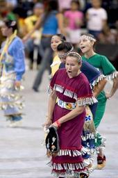 | Keywords: smithsonian institution smithsonianinstitution womensday native american women nativeamericanwomen traditional dance traditionaldance traditional beading traditionalbeading indian kids indiankids indian native american nativeamerican bead show ghost dance ghostdance performance powwow apache navajo navaho dance chant sing song woman women girl headband dress colorful dancing color costumes singing national museum of the american indian nationalmuseumoftheamericanindian outdoor Description: Powwows are large social gatherings of Native Americans who follow traditional dances started centuries ago by their ancestors, and which continually evolve to include contemporary aspects. These events of drum music, dancing, singing, artistry and food, are attended by Natives and non-Natives, all of whom join in the dancing and take advantage of the opportunity to see old friends and teach the traditional ways to a younger generation. During the National Powwow, the audience see dancers in full regalia compete in several dance categories, including Men and Women's Golden Age (ages 50 and older); Men's Fancy Dance, Grass and Traditional (Northern and Southern); Women's Jingle Dress, Fancy Shawl, and Traditional (Northern and Southern); Teens (13-17); Juniors (6-12) and Tiny Tots (ages 5 and younger). The drum groups are the heart of all powwows and provide the pulsating and thunderous beats that accompany a dancer's every movement. The powwow is led by three "host drums" that showcase three distinct styles of singing (Northern, Southern and contemporary) and represent the best examples of each style. The drum contest highlights groups of 10 to 12 members each, and they sing traditional family songs that are passed down orally from one generation to the next. The National Museum of the American Indian sponsored the National Powwow in 2002, 2005, and 2007 as a way of presenting to the public the diversity and social traditions of contemporary Native cultures. Creator/Photographer: Katherine Fogden Medium: Digital photograph Culture: American Indian Geography: USA Date: 2005 Repository: National Museum of the American Indian Accession number: 081305KFPWd135 Description: Powwows are large social gatherings of Native Americans who follow traditional dances started centuries ago by their ancestors, and which continually evolve to include contemporary aspects. These events of drum music, dancing, singing, artistry and food, are attended by Natives and non-Natives, all of whom join in the dancing and take advantage of the opportunity to see old friends and teach the traditional ways to a younger generation. During the National Powwow, the audience see dancers in full regalia compete in several dance categories, including Men and Women's Golden Age (ages 50 and older); Men's Fancy Dance, Grass and Traditional (Northern and Southern); Women's Jingle Dress, Fancy Shawl, and Traditional (Northern and Southern); Teens (13-17); Juniors (6-12) and Tiny Tots (ages 5 and younger). The drum groups are the heart of all powwows and provide the pulsating and thunderous beats that accompany a dancer's every movement. The powwow is led by three "host drums" that showcase three distinct styles of singing (Northern, Southern and contemporary) and represent the best examples of each style. The drum contest highlights groups of 10 to 12 members each, and they sing traditional family songs that are passed down orally from one generation to the next. The National Museum of the American Indian sponsored the National Powwow in 2002, 2005, and 2007 as a way of presenting to the public the diversity and social traditions of contemporary Native cultures. Creator/Photographer: Katherine Fogden Medium: Digital photograph Culture: American Indian Geography: USA Date: 2005 Repository: National Museum of the American Indian Accession number: 081305KFPWd135 |