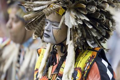 | Keywords: smithsonian institution smithsonianinstitution 2005 american indian americanindian powwow woman feather head dress headdress beads face paint facepaint headre hoofdtooi veren indianen culture costume feathers make-up makeup powwows native dress national museum of the american indian nationalmuseumoftheamericanindian Description: Powwows are large social gatherings of Native Americans who follow traditional dances started centuries ago by their ancestors, and which continually evolve to include contemporary aspects. These events of drum music, dancing, singing, artistry and food, are attended by Natives and non-Natives, all of whom join in the dancing and take advantage of the opportunity to see old friends and teach the traditional ways to a younger generation. During the National Powwow, the audience see dancers in full regalia compete in several dance categories, including Men and Women's Golden Age (ages 50 and older); Men's Fancy Dance, Grass and Traditional (Northern and Southern); Women's Jingle Dress, Fancy Shawl, and Traditional (Northern and Southern); Teens (13-17); Juniors (6-12) and Tiny Tots (ages 5 and younger). The drum groups are the heart of all powwows and provide the pulsating and thunderous beats that accompany a dancer's every movement. The powwow is led by three "host drums" that showcase three distinct styles of singing (Northern, Southern and contemporary) and represent the best examples of each style. The drum contest highlights groups of 10 to 12 members each, and they sing traditional family songs that are passed down orally from one generation to the next. The National Museum of the American Indian sponsored the National Powwow in 2002, 2005, and 2007 as a way of presenting to the public the diversity and social traditions of contemporary Native cultures. Creator/Photographer: Walter Larrimore Medium: Digital photograph Culture: American Indian Geography: USA Date: 2005 Repository: National Museum of the American Indian Accession number: 081205WLPOWWOW0455 Description: Powwows are large social gatherings of Native Americans who follow traditional dances started centuries ago by their ancestors, and which continually evolve to include contemporary aspects. These events of drum music, dancing, singing, artistry and food, are attended by Natives and non-Natives, all of whom join in the dancing and take advantage of the opportunity to see old friends and teach the traditional ways to a younger generation. During the National Powwow, the audience see dancers in full regalia compete in several dance categories, including Men and Women's Golden Age (ages 50 and older); Men's Fancy Dance, Grass and Traditional (Northern and Southern); Women's Jingle Dress, Fancy Shawl, and Traditional (Northern and Southern); Teens (13-17); Juniors (6-12) and Tiny Tots (ages 5 and younger). The drum groups are the heart of all powwows and provide the pulsating and thunderous beats that accompany a dancer's every movement. The powwow is led by three "host drums" that showcase three distinct styles of singing (Northern, Southern and contemporary) and represent the best examples of each style. The drum contest highlights groups of 10 to 12 members each, and they sing traditional family songs that are passed down orally from one generation to the next. The National Museum of the American Indian sponsored the National Powwow in 2002, 2005, and 2007 as a way of presenting to the public the diversity and social traditions of contemporary Native cultures. Creator/Photographer: Walter Larrimore Medium: Digital photograph Culture: American Indian Geography: USA Date: 2005 Repository: National Museum of the American Indian Accession number: 081205WLPOWWOW0455 |