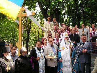 Keywords: 2005hrest05.jpg a ceremony of laying the foundation of a church in Kyiv Ukraine Own 18th of June 2005 Martofliak public domain Cornerstone ceremonies Philaret Denisenko Orthodox festivals People in 2005