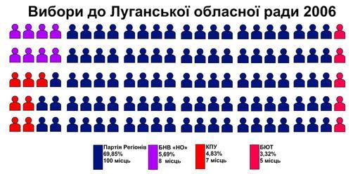 Keywords: Луганська обласна рада 2006.png uk Розподіл депутатських мандатів за езультатами вибо ів 2006 оку own Василь Бабич 2010-04-05 Vasyl` Babych Luhansk Oblast local election 2006