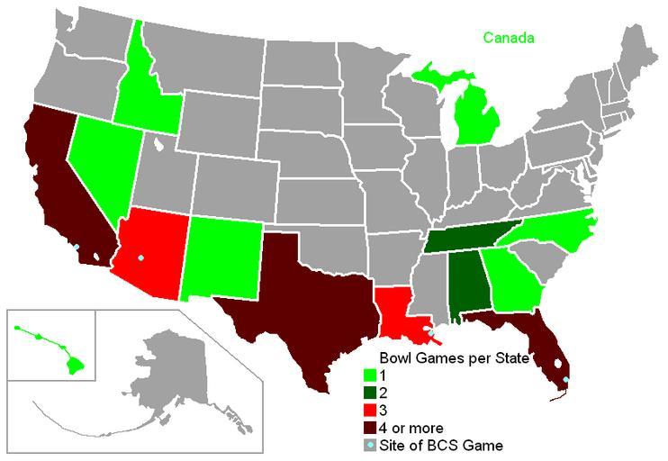 | Keywords: 2006 Bowls-USA-states.PNG derived from http //en wikipedia org/wiki/Image BlankMap-USA-states jpg; map of states with 2006-07 NCAA football bowl games schools and their division I don't know how to edit the map but I assume that someone will notice this comment Louisiana has 4 bowls this year The New Orleans the Independence the Sugar and the BCS National Championship game 2008 And Arizona only has two Fiesta and Insight Response The map is based on 2006 when the national title game was played in Arizona rather than Louisiana Transferred from http //en wikipedia org en wikipedia; transferred to Commons by User Quadell using http //tools wikimedia de/~magnus/commonshelper php CommonsHelper 2007-05-24 Original uploader was Porsche997SBS at http //en wikipedia org en wikipedia Later version s were uploaded by Reorion Pepperjack Falcorian at http //en wikipedia org en wikipedia Released into the public domain by the author en wikipedia Porsche997SBS original upload log page en wikipedia 2006_Bowls-USA-states PNG 2007-05-24 19 50 Porsche997SBS 841×580× 32356 bytes <nowiki>no city confusion</nowiki> 2007-04-25 22 12 Porsche997SBS 841×580× 32380 bytes <nowiki>dots easier to see</nowiki> 2007-03-11 03 28 Reorion 841×580× 32384 bytes <nowiki>Reverted to earlier revision</nowiki> 2007-03-11 03 28 Reorion 841×580× 32364 bytes <nowiki>Reverted to earlier revision</nowiki> 2007-03-11 03 27 Reorion 841×580× 32364 bytes <nowiki>Reverted to earlier revision</nowiki> 2007-03-11 03 26 Reorion 841×580× 32364 bytes <nowiki>Reverted to earlier revision</nowiki> 2007-03-11 02 19 Porsche997SBS 841×580× 32384 bytes <nowiki>Reverted to earlier revision</nowiki> 2007-02-19 03 54 Reorion 841×580× 32364 bytes <nowiki>Reverted to earlier revision</nowiki> 2007-01-12 02 01 Porsche997SBS 841×580× 32384 bytes <nowiki></nowiki> 2006-12-15 19 27 Pepperjack 841×580× 32364 bytes <nowiki>Reverted to earlier revision</nowiki> 2006-12-03 23 05 Porsche997SBS 841×580× 16583 bytes <nowiki>Reverted to earlier revision</nowiki> 2006-12-03 23 04 Porsche997SBS 841×580× 32364 bytes <nowiki>Reverted to earlier revision</nowiki> 2006-11-11 22 49 Falcorian 841×580× 16583 bytes <nowiki>Lossless compression </nowiki> 2006-10-29 16 48 Porsche997SBS 841×580× 32364 bytes <nowiki>derived from http //en wikipedia org/wiki/Image BlankMap-USA-states PNG; map of states with 2006-07 NCAA football bowl games schools and their division </nowiki> 2006 NCAA Division I FBS football season Sports competitions College football NCAA football bowl maps |