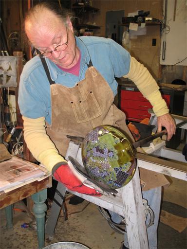 Keywords: 2006 Richard working on Floral Core Piece 1.jpg en Studio glass artist Richard Ritter at work 2006 own Personal photograph Slipham 2006 Glass artists from the United States