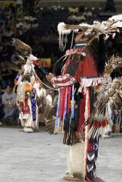 | Keywords: smithsonian institution smithsonianinstitution native american nativeamerican 21 century native ceremony. 21centurynativeceremony traditional costume traditionalcostume powwow tradition culture american indian americanindian feathers moccasins color national museum of the american indian nationalmuseumoftheamericanindian outdoor Description: Powwows are large social gatherings of Native Americans who follow traditional dances started centuries ago by their ancestors, and which continually evolve to include contemporary aspects. These events of drum music, dancing, singing, artistry and food, are attended by Natives and non-Natives, all of whom join in the dancing and take advantage of the opportunity to see old friends and teach the traditional ways to a younger generation. During the National Powwow, the audience see dancers in full regalia compete in several dance categories, including Men and Women's Golden Age (ages 50 and older); Men's Fancy Dance, Grass and Traditional (Northern and Southern); Women's Jingle Dress, Fancy Shawl, and Traditional (Northern and Southern); Teens (13-17); Juniors (6-12) and Tiny Tots (ages 5 and younger). The drum groups are the heart of all powwows and provide the pulsating and thunderous beats that accompany a dancer's every movement. The powwow is led by three "host drums" that showcase three distinct styles of singing (Northern, Southern and contemporary) and represent the best examples of each style. The drum contest highlights groups of 10 to 12 members each, and they sing traditional family songs that are passed down orally from one generation to the next. The National Museum of the American Indian sponsored the National Powwow in 2002, 2005, and 2007 as a way of presenting to the public the diversity and social traditions of contemporary Native cultures. Creator/Photographer: Cynthia Frankenburg Medium: Digital photograph Culture: American Indian Geography: USA Date: 2007 Repository: National Museum of the American Indian Accession number: 20070812_01a_csf_ps_348 Description: Powwows are large social gatherings of Native Americans who follow traditional dances started centuries ago by their ancestors, and which continually evolve to include contemporary aspects. These events of drum music, dancing, singing, artistry and food, are attended by Natives and non-Natives, all of whom join in the dancing and take advantage of the opportunity to see old friends and teach the traditional ways to a younger generation. During the National Powwow, the audience see dancers in full regalia compete in several dance categories, including Men and Women's Golden Age (ages 50 and older); Men's Fancy Dance, Grass and Traditional (Northern and Southern); Women's Jingle Dress, Fancy Shawl, and Traditional (Northern and Southern); Teens (13-17); Juniors (6-12) and Tiny Tots (ages 5 and younger). The drum groups are the heart of all powwows and provide the pulsating and thunderous beats that accompany a dancer's every movement. The powwow is led by three "host drums" that showcase three distinct styles of singing (Northern, Southern and contemporary) and represent the best examples of each style. The drum contest highlights groups of 10 to 12 members each, and they sing traditional family songs that are passed down orally from one generation to the next. The National Museum of the American Indian sponsored the National Powwow in 2002, 2005, and 2007 as a way of presenting to the public the diversity and social traditions of contemporary Native cultures. Creator/Photographer: Cynthia Frankenburg Medium: Digital photograph Culture: American Indian Geography: USA Date: 2007 Repository: National Museum of the American Indian Accession number: 20070812_01a_csf_ps_348 |