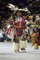 | Keywords: smithsonian institution smithsonianinstitution indian native american nativeamerican ceremony ritual ritual dance ritualdance dancing mask feather head dress headdress costume dance feathers american flag americanflag costumes colorful face painting facepainting national museum of the american indian nationalmuseumoftheamericanindian outdoor Description: Powwows are large social gatherings of Native Americans who follow traditional dances started centuries ago by their ancestors, and which continually evolve to include contemporary aspects. These events of drum music, dancing, singing, artistry and food, are attended by Natives and non-Natives, all of whom join in the dancing and take advantage of the opportunity to see old friends and teach the traditional ways to a younger generation. During the National Powwow, the audience see dancers in full regalia compete in several dance categories, including Men and Women's Golden Age (ages 50 and older); Men's Fancy Dance, Grass and Traditional (Northern and Southern); Women's Jingle Dress, Fancy Shawl, and Traditional (Northern and Southern); Teens (13-17); Juniors (6-12) and Tiny Tots (ages 5 and younger). The drum groups are the heart of all powwows and provide the pulsating and thunderous beats that accompany a dancer's every movement. The powwow is led by three "host drums" that showcase three distinct styles of singing (Northern, Southern and contemporary) and represent the best examples of each style. The drum contest highlights groups of 10 to 12 members each, and they sing traditional family songs that are passed down orally from one generation to the next. The National Museum of the American Indian sponsored the National Powwow in 2002, 2005, and 2007 as a way of presenting to the public the diversity and social traditions of contemporary Native cultures. Creator/Photographer: Cynthia Frankenburg Medium: Digital photograph Culture: American Indian Geography: USA Date: 2007 Repository: National Museum of the American Indian Accession number: 20070812_01a_csf_ps_360 Description: Powwows are large social gatherings of Native Americans who follow traditional dances started centuries ago by their ancestors, and which continually evolve to include contemporary aspects. These events of drum music, dancing, singing, artistry and food, are attended by Natives and non-Natives, all of whom join in the dancing and take advantage of the opportunity to see old friends and teach the traditional ways to a younger generation. During the National Powwow, the audience see dancers in full regalia compete in several dance categories, including Men and Women's Golden Age (ages 50 and older); Men's Fancy Dance, Grass and Traditional (Northern and Southern); Women's Jingle Dress, Fancy Shawl, and Traditional (Northern and Southern); Teens (13-17); Juniors (6-12) and Tiny Tots (ages 5 and younger). The drum groups are the heart of all powwows and provide the pulsating and thunderous beats that accompany a dancer's every movement. The powwow is led by three "host drums" that showcase three distinct styles of singing (Northern, Southern and contemporary) and represent the best examples of each style. The drum contest highlights groups of 10 to 12 members each, and they sing traditional family songs that are passed down orally from one generation to the next. The National Museum of the American Indian sponsored the National Powwow in 2002, 2005, and 2007 as a way of presenting to the public the diversity and social traditions of contemporary Native cultures. Creator/Photographer: Cynthia Frankenburg Medium: Digital photograph Culture: American Indian Geography: USA Date: 2007 Repository: National Museum of the American Indian Accession number: 20070812_01a_csf_ps_360 |