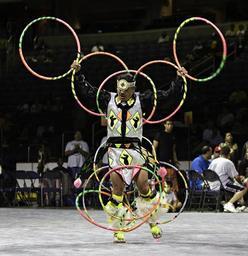 | Keywords: smithsonian institution smithsonianinstitution powwow hoop dancer hoopdancer american indian americanindian native american nativeamerican hoops national museum of the american indian nationalmuseumoftheamericanindian tangle vehicle bike wheel Description: Powwows are large social gatherings of Native Americans who follow traditional dances started centuries ago by their ancestors, and which continually evolve to include contemporary aspects. These events of drum music, dancing, singing, artistry and food, are attended by Natives and non-Natives, all of whom join in the dancing and take advantage of the opportunity to see old friends and teach the traditional ways to a younger generation. During the National Powwow, the audience see dancers in full regalia compete in several dance categories, including Men and Women's Golden Age (ages 50 and older); Men's Fancy Dance, Grass and Traditional (Northern and Southern); Women's Jingle Dress, Fancy Shawl, and Traditional (Northern and Southern); Teens (13-17); Juniors (6-12) and Tiny Tots (ages 5 and younger). The drum groups are the heart of all powwows and provide the pulsating and thunderous beats that accompany a dancer's every movement. The powwow is led by three "host drums" that showcase three distinct styles of singing (Northern, Southern and contemporary) and represent the best examples of each style. The drum contest highlights groups of 10 to 12 members each, and they sing traditional family songs that are passed down orally from one generation to the next. The National Museum of the American Indian sponsored the National Powwow in 2002, 2005, and 2007 as a way of presenting to the public the diversity and social traditions of contemporary Native cultures. Creator/Photographer: Ken Rahaim Medium: Digital photograph Culture: American Indian Geography: USA Date: 2007 Repository: National Museum of the American Indian Accession number: 07natl-powwow_0498 Description: Powwows are large social gatherings of Native Americans who follow traditional dances started centuries ago by their ancestors, and which continually evolve to include contemporary aspects. These events of drum music, dancing, singing, artistry and food, are attended by Natives and non-Natives, all of whom join in the dancing and take advantage of the opportunity to see old friends and teach the traditional ways to a younger generation. During the National Powwow, the audience see dancers in full regalia compete in several dance categories, including Men and Women's Golden Age (ages 50 and older); Men's Fancy Dance, Grass and Traditional (Northern and Southern); Women's Jingle Dress, Fancy Shawl, and Traditional (Northern and Southern); Teens (13-17); Juniors (6-12) and Tiny Tots (ages 5 and younger). The drum groups are the heart of all powwows and provide the pulsating and thunderous beats that accompany a dancer's every movement. The powwow is led by three "host drums" that showcase three distinct styles of singing (Northern, Southern and contemporary) and represent the best examples of each style. The drum contest highlights groups of 10 to 12 members each, and they sing traditional family songs that are passed down orally from one generation to the next. The National Museum of the American Indian sponsored the National Powwow in 2002, 2005, and 2007 as a way of presenting to the public the diversity and social traditions of contemporary Native cultures. Creator/Photographer: Ken Rahaim Medium: Digital photograph Culture: American Indian Geography: USA Date: 2007 Repository: National Museum of the American Indian Accession number: 07natl-powwow_0498 |