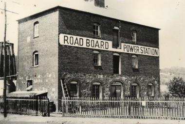 | Keywords: 2008-54 Toodyay Power Station in Connors Mill.tif en Black white photo of Connor's Mill taken from Stirling Terrace to north west Mill bears freshly painted sign on front 'Road Board Power Station' Picket fence encloses front and sides of front yard Small wire gate in side fence Ladder is leaning against front wall Tree to the right Pole to the left Slatted tower-like structure to the left rear of building and two round metal tanks Slatted structure air vent on the roof circa 1920 s Shire of Toodyay Newcastle Gaol Museum collection author other versions Custom license marker 2014 12 28 PD-Australia Uploaded with UploadWizard Stirling Terrace Toodyay Buildings in Toodyay Power plants in Western Australia |