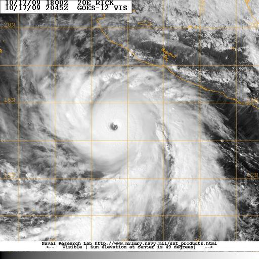 | Keywords: 20091017.2045.goes12.x.vis1km.20ERICK.125kts-938mb-146N-1039W.100pc.jpg  en Hurricane Rick as a strong Category 4 hurricane http //199 9 2 143/tcdat/tc09/EPAC/20E RICK/vis/geo/1km/ NRL 2009-10-17 Public domain PD-USGov-Military-Navy Hurricane Rick 2009 |