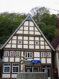 | Keywords: 2010-05-11 Vlotho 067.jpg in Vlotho Kreis Herford Nordrhein-Westfalen in Vlotho District of Herford North Rhine-Westphalia Germany TUBS/Translation own IXUS 500 2010-05-11 TUBS 52 10 7 81 N 8 51 44 19 E region DE_heading WNW self TUBS TUBS/licensesection Attribution TUBS/Credits Timber framing in Vlotho |