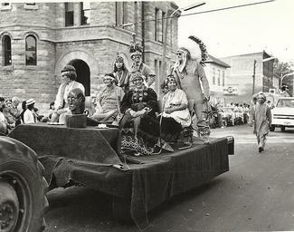 | Keywords: parades mohawks post office postoffice 1970s Photograph of people on a tractor-drawn float in the Centennial Parade held in Deseronto, Ontario, on Thursday, 17th June, 1971. Taken on Main Street, in front of the Post Office. From a collection of materials relating to the 1971 centennial of Deseronto's incorporation as a village. Photograph believed to have been taken by Lloyd Thompson for The Quinte Scanner. Update, 7 May 2014: the woman on the left has been identified as Sally Brant. Woman standing at back: Dorothy Green, next to David Maracle. Woman in dark dress: Vivian Brant, man standing at right, [Peewee] Brant. Photograph of people on a tractor-drawn float in the Centennial Parade held in Deseronto, Ontario, on Thursday, 17th June, 1971. Taken on Main Street, in front of the Post Office. From a collection of materials relating to the 1971 centennial of Deseronto's incorporation as a village. Photograph believed to have been taken by Lloyd Thompson for The Quinte Scanner. Update, 7 May 2014: the woman on the left has been identified as Sally Brant. Woman standing at back: Dorothy Green, next to David Maracle. Woman in dark dress: Vivian Brant, man standing at right, [Peewee] Brant. |
