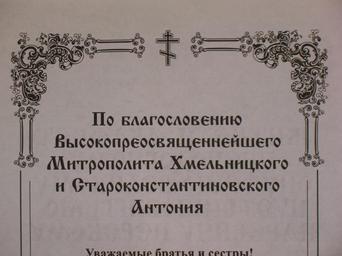 | Keywords: Благословение Антония Хмельницкого 2011.JPG Благословение ит ополита Хмельницкого и Ста оконстантиновского Антония УПЦ П Текст станда тный own photo 2011 ит ополит Антоний Фиалко PD-trivial Antony Fialko Blessings in Russian Orthodox Church Religion in Khmelnytsky Oblast |
