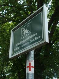 Keywords: 20120527Schild Wegmarkierung Hockenheim.jpg Schild mit Wegmarkierung in Hockenheim own AnRo0002 2012-05-27 Cc-zero Signs in Hockenheim Hiking and footpath signs in Hockenheim Franken-Hessen-Kurpfalzweg Dog-related signs