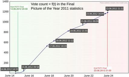 | Keywords: 2012-06-23 POTY R2 stats.svg en Chart vote count f time ; Finalists; POTY 2011 de Diagramm das die Anzahl der abgegebenen Stimmen in der Endrunde POTY2011 auf der Ordinate und das Datum auf der Abszisse zeigt own based on the numbers I collected with <code><nowiki>genStats </nowiki></code> of MediaWiki EnhancedPOTY js Rillke 2012-06-23 Commons statistics EnhancedPOTY Cc-zero |