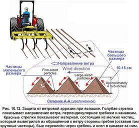 | Keywords: Обеспыливание 2012 Рис. 10.12 Принцип защиты от эрозии при вспашке.jpg ru Иллюст ация к учебнику по обеспыливанию п и добыче и пе е аботке полезных мине альных ископаемых глава 10 а Рис 10 12 показано улавливание уносимых вет ом частиц се ией г ебней высотой 10-15 см К асные ст елки показывают как мате иал пе еносится вет ом че ез г ебень и улавливается в ложбине en Figure 10 12 The armoring process for tillage rows Blue arrow denotes wind direction perpendicular to tillage rows Magenta arrows depict fine material being eroded from the windward side of ridges leaving large-sized particles with the fine material being carried over ridge tops and deposited in the troughs on the leeward side of the ridges 2015-02-22 http //www cdc gov/niosh/mining/works/coversheet1765 html Dust Control Handbook for Industrial Minerals Mining and Processing CDC 2012 Andrew B Cecala Andrew D O Brien Joseph Schall Jay F Colinet et al other versions Рис 10 12 Защита от вет овой э озии п и вспашке Голубая ст елка показывает нап авление вет а пе пендикуля ное г ебням и канавкам К асные ст елки показывают мате иал состоящий из мелких частиц кото ый вывет ился из об ащённой к вет у сто оны г ебня оставив там к упные частицы был пе енесён че ез г ебень и осел в канавке за ним PD-USGov Workplace safety Uploaded with UploadWizard |